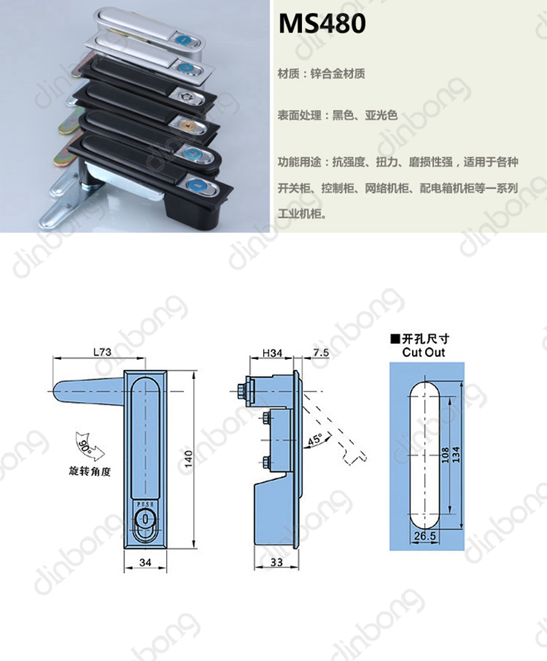 结构说明 通过旋转把手90度实现开启或锁闭