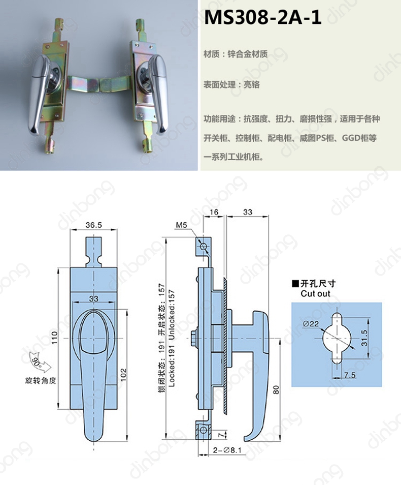 结构说明 通过旋转把手90度实现开启或锁闭