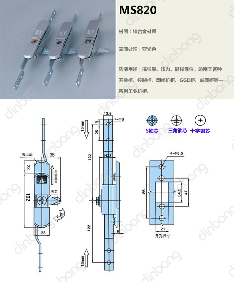 产品卖点 此款为通用型机柜锁,可供多种机柜设备使用!