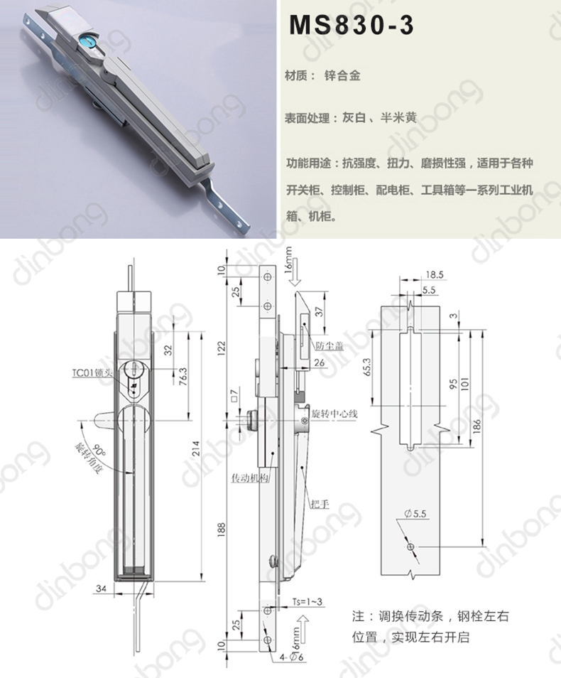 结构说明 通过旋转把手90度实现开启或锁闭